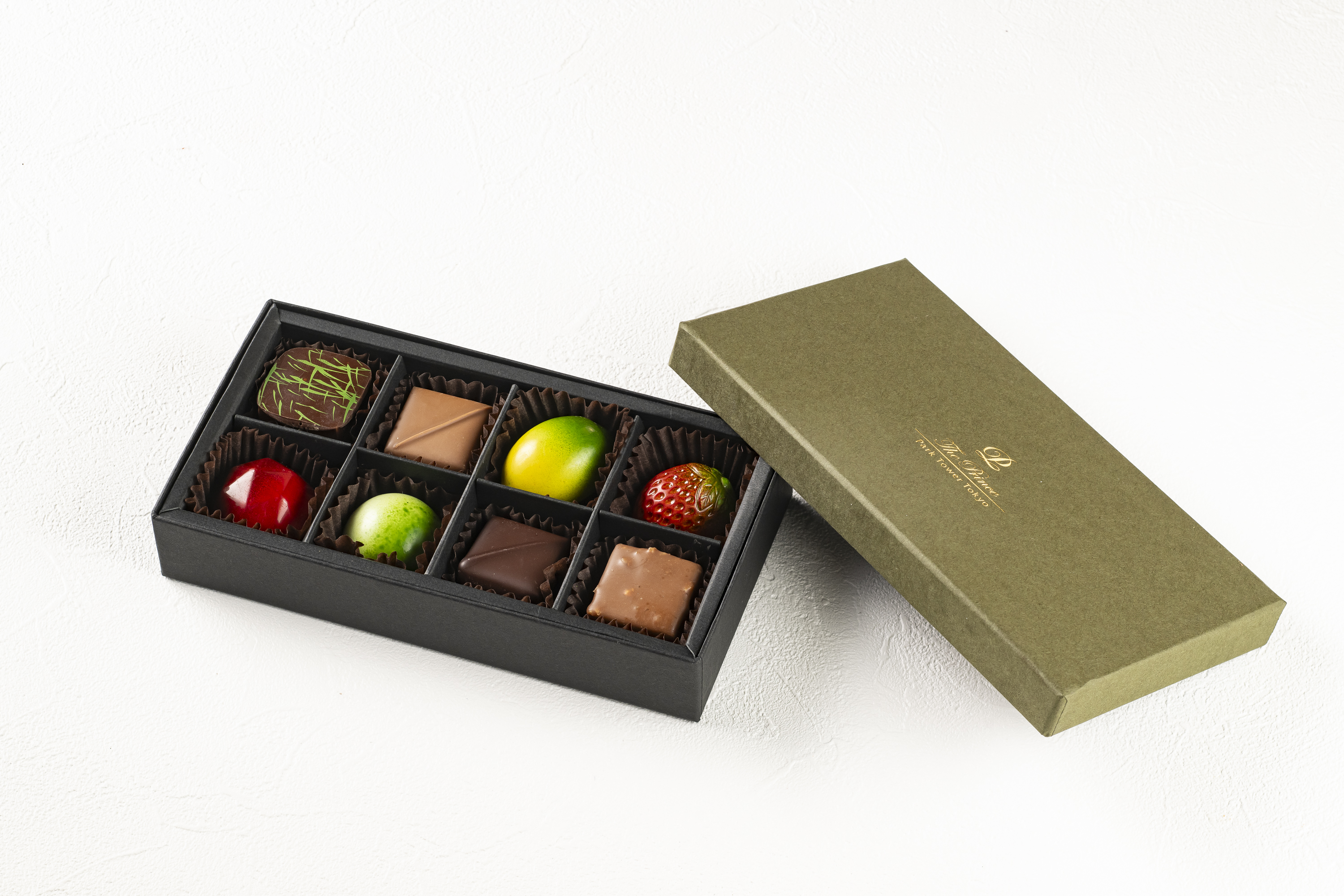 【内容】8個入/ストロベリー&ラズベリー、ミルク、抹茶、プラリネ、ピスタチオ、レモン&ライム、スイート、コーヒー各1個